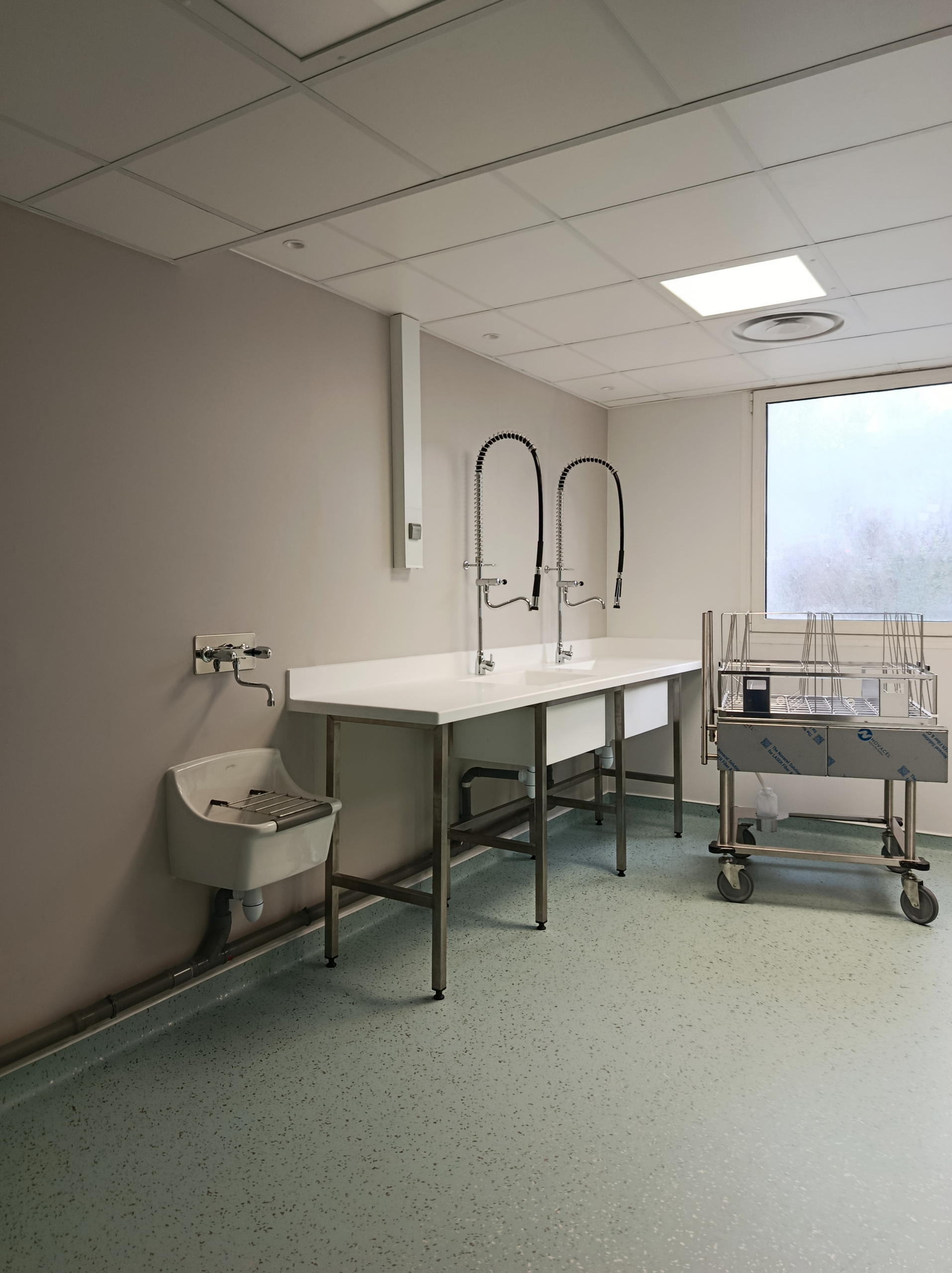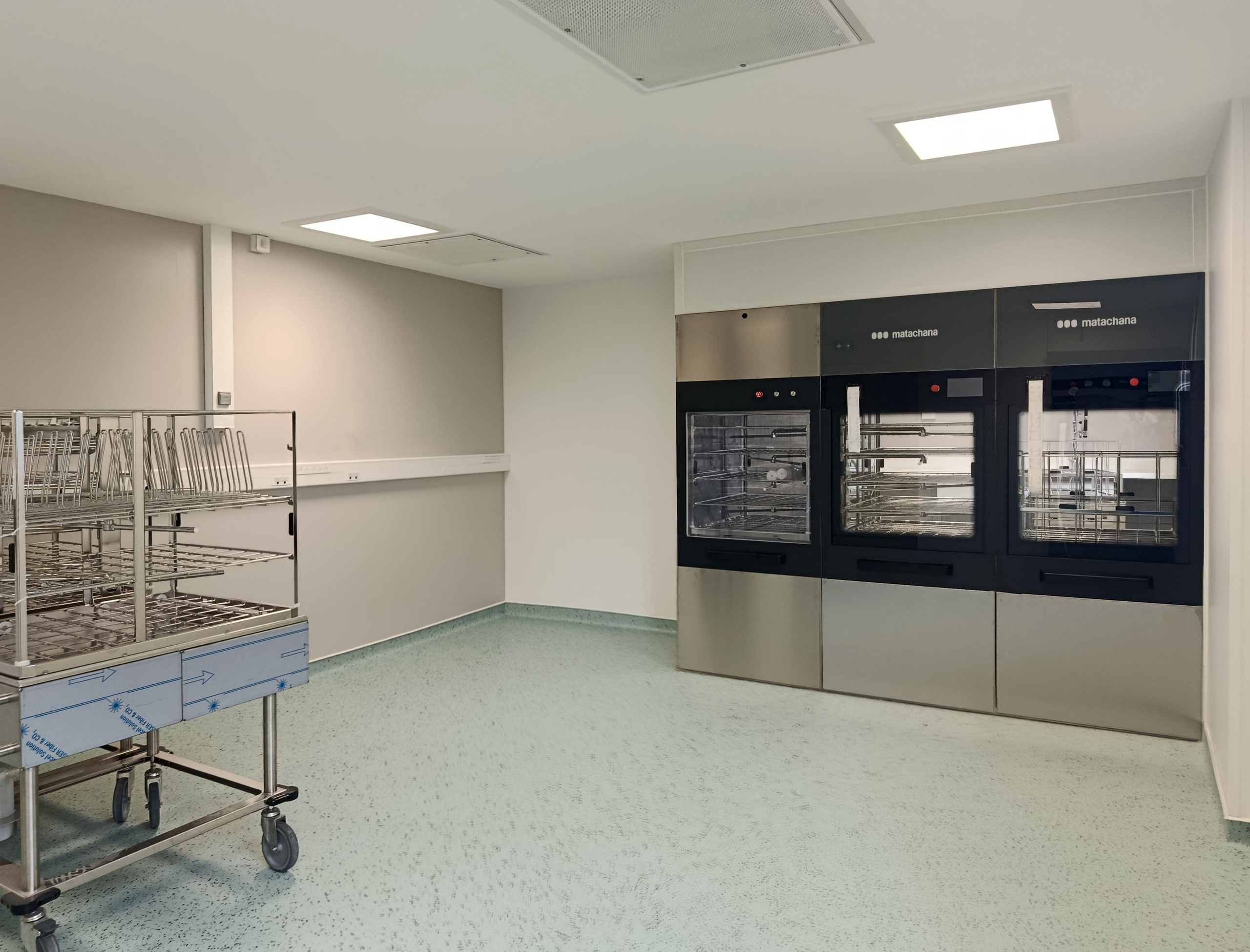 Salle de lavage, de conditionnement, de libération, de stockage stérile et locaux associés